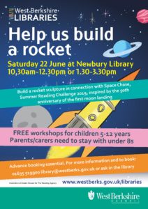 To link in with this year’s Summer Reading Challenge Newbury Library  are holding a Rocket Building workshop on Saturday 22nd June for 5-12 year olds. This will involve helping to construct a large rocket (possibly 6ft tall) out of bits and pieces.